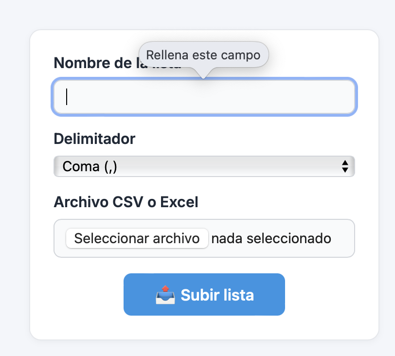 - Emails inválidos: corrige direcciones mal escritas antes de importar.