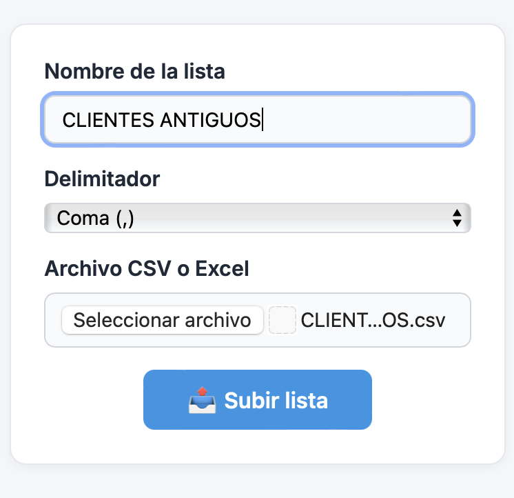- Archivo CSV o Excel: selecciona el archivo desde tu ordenador.