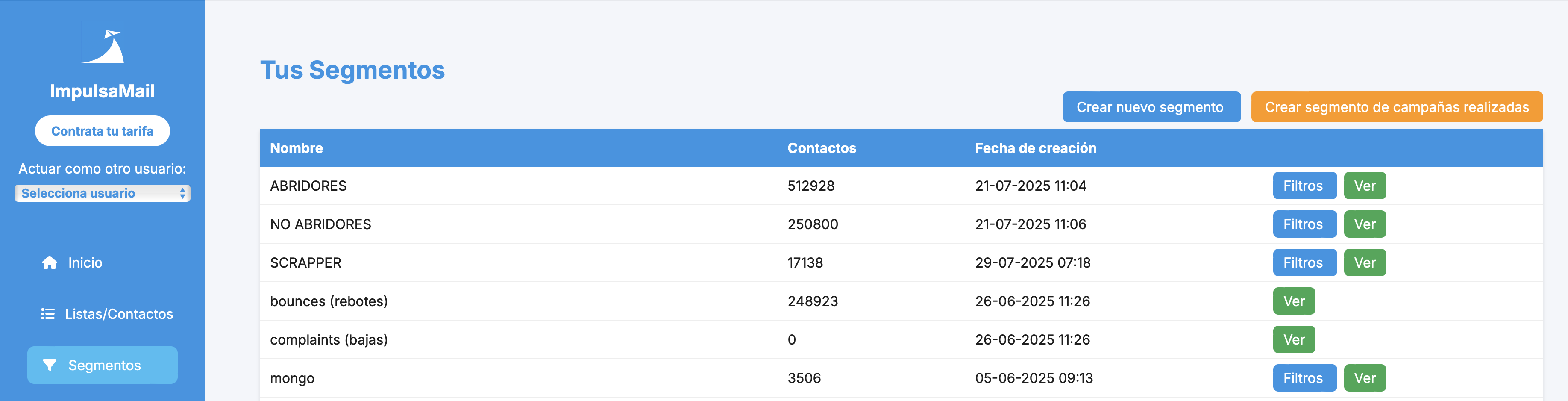 Ese nuevo segmento aparecerá junto al resto y podrás usarlo directamente al crear una campaña.